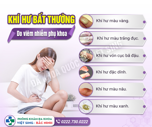 - Khí hư màu vàng hoặc xanh, mùi hôi khó chịu, ra nhiều.