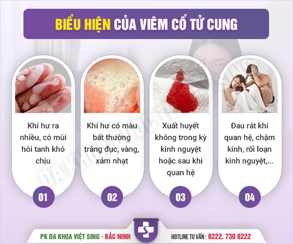 Đây là tình trạng viêm nhiễm tại phần cổ tử cung – nơi nối giữa âm đạo và tử cung. Viêm có thể do nhiễm khuẩn, nấm, virus (HPV, herpes…) hoặc do tổn thương lâu ngày không chữa trị.