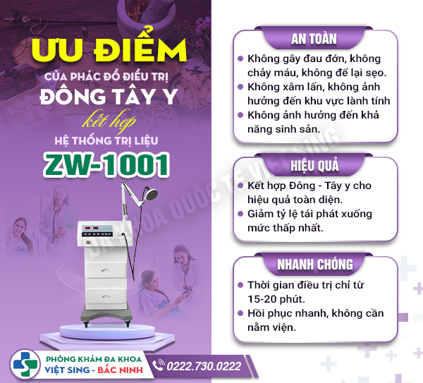 - Hệ thống sóng tiêu viêm ngoài cơ thể ZW – 1001: ZW – 1001 có khả năng xác định chính xác mầm bệnh và loại bỏ nhanh chóng, đặc biệt không để sót mầm bệnh nên giảm thiểu tối đa tình trạng tái nhiễm. Hoạt động theo nguyên lý xâm lấn tối thiểu nên người bệnh sẽ không có cảm giác đau đớn, ít chảy máu, hồi phục nhanh chóng.